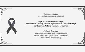 Rodzinie Zmarłego wyrazy najgłębszego i szczerego współczucia składają Rektor, Senat, Rada Uczelni oraz społeczność akademicka Politechniki Rzeszowskiej.