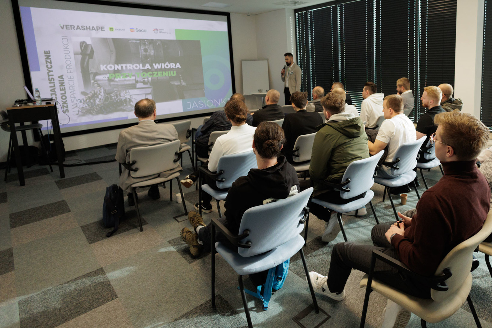 W Centrum Szkoleniowym Verashape w Tajęcinie odbyło się seminarium poświęcone kontroli wiórów przy toczeniu. Wydarzenie było zorganizowane przez firmę Verashape oraz jej partnerów – Seco Tools i Machine Tools International. Dzięki współpracy Katedry Technik Wytwarzania i Automatyzacji Wydziału Budowy Maszyn i Lotnictwa z firmą Verashape studenci mieli wyjątkową okazję, aby zdobyć praktyczną wiedzę na temat wpływu narzędzi, parametrów skrawania i strategii CAM na procesy toczenia, jak również zobaczyć innowacyjne rozwiązania technologiczne w praktyce.